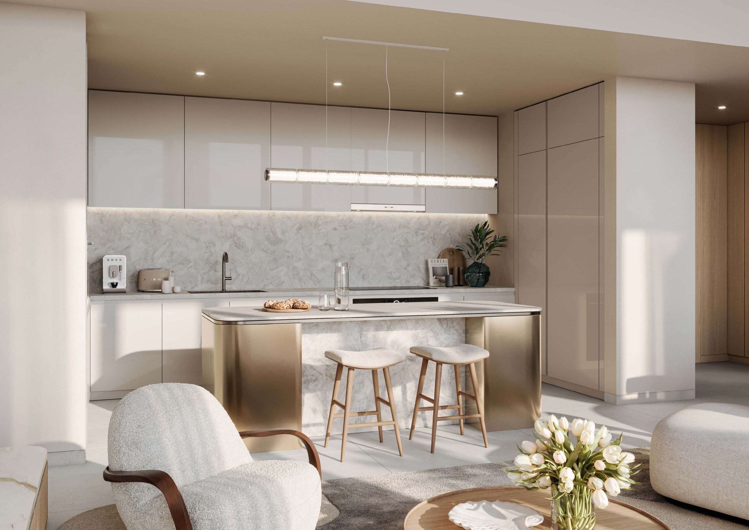 Palm Central Private Residences presents a refined collection of one- to three-bedroom apartments designed for light, comfort, and connection to the outdoors.